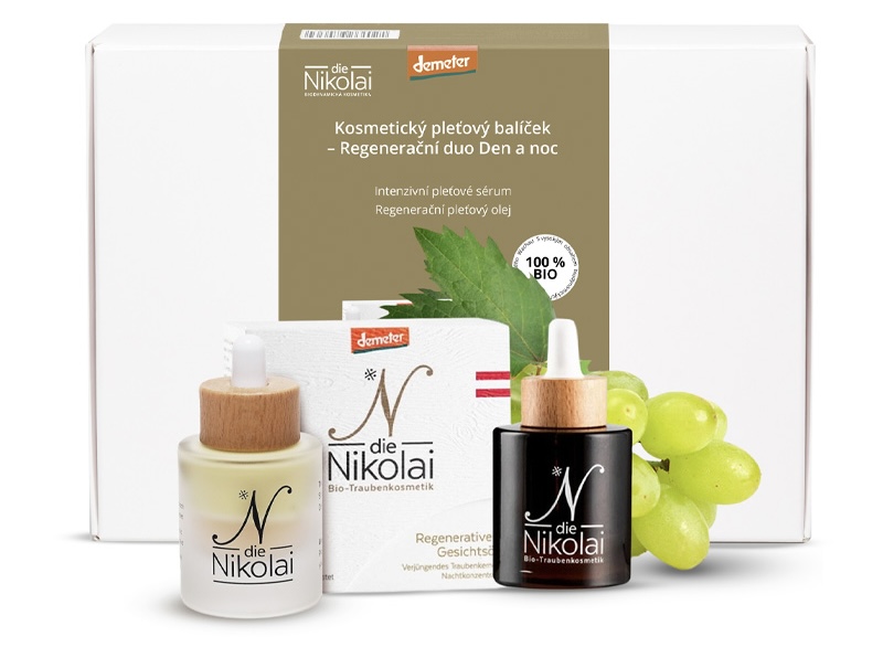 - Biodynamické intenzivní pleťové sérum – Výběr ze zlatých hroznů díky vysoké koncentraci oleje z hroznových jader pleť krásně zjemní a připraví k nanesení pleťového krému.